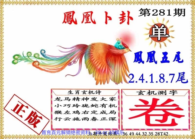 281期:玄机测字【卷】开:羊47 玄机七肖:牛马鸡羊龙虎狗 玄机五肖:牛马鸡羊龙 卜卦单双:单数 卜卦五尾:2.4.1.8.7 |